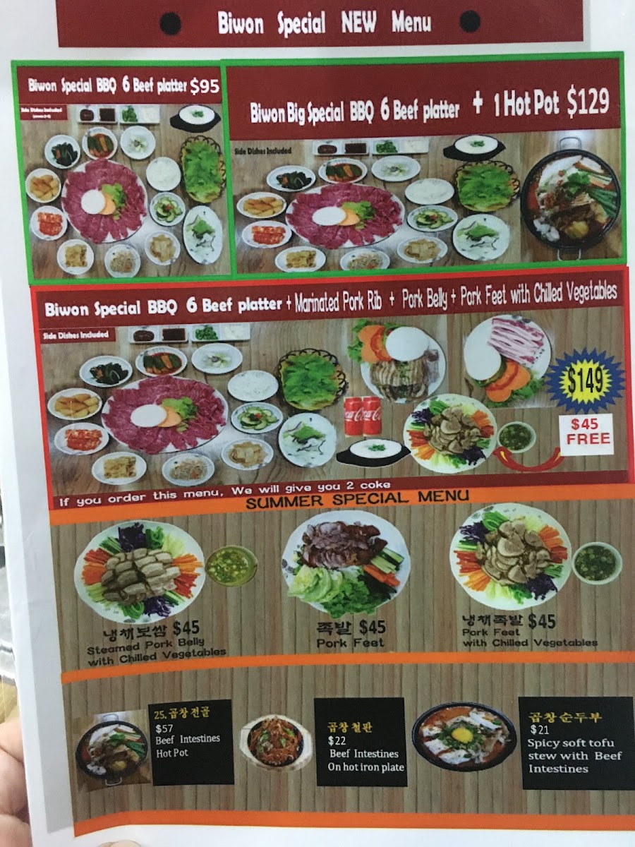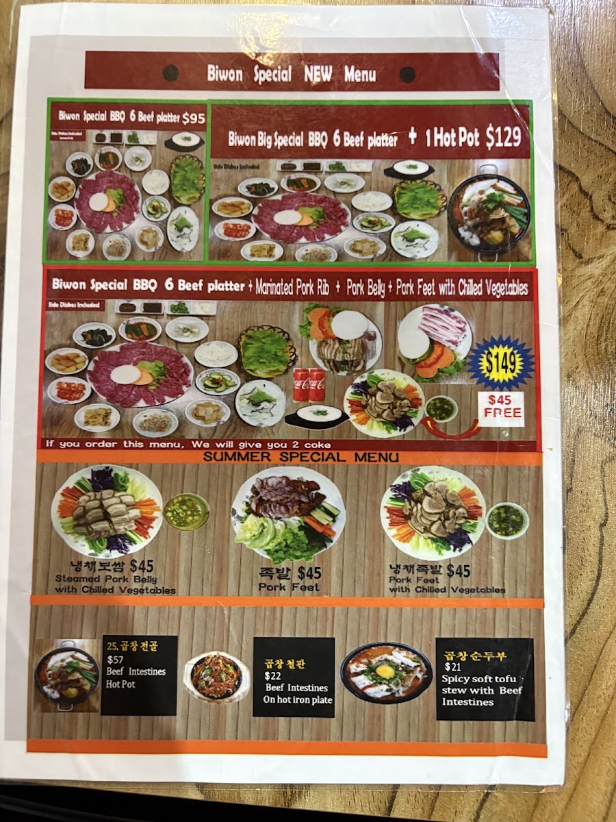 The menu at Biwon BBQ Hornsby offers a diverse selection of traditional Korean barbecue and related dishes, suitable for casual dining experiences. Guests can choose from a variety of main dishes, meals, and complementary sides that highlight authentic Korean flavors.